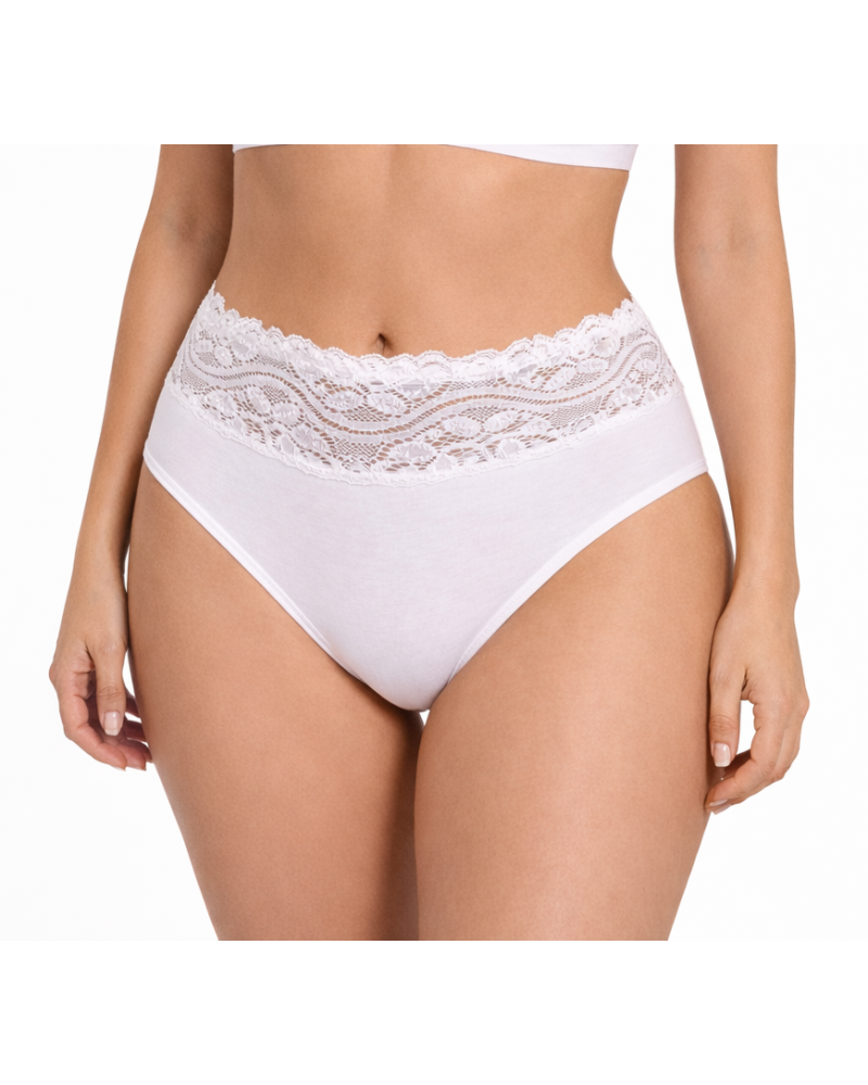 Slip midi vita alta realizzato in cotone modal elasticizzato con fascia in pizzo textronic. La sua estrema morbidezza è studiata per il massimo del comfort.
